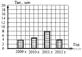 Версия для печати и копирования в MS WordНа диаграмме показано количество посаженных деревьев и кустарников в г. Сочи за период с 2009 по 2012 гг. Определите, сколько всего было посажено зеленых насаждений за 2011 г. и 2012 г.?