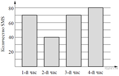 Версия для печати и копирования в MS WordНа диаграмме показано количество SMS, присланных слушателями за каждый час четырехчасового эфира программы по заявкам на радио. Определите, на сколько больше сообщений было прислано за последние два часа программы по сравнению с первыми двумя часами этой программы.