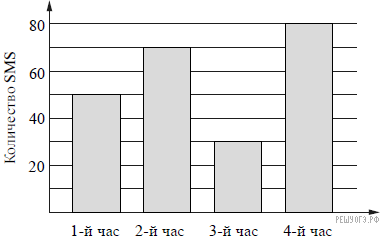 Версия для печати и копирования в MS WordНа диаграмме показано количество SMS, присланных слушателями за каждый час четырехчасового эфира программы по заявкам на радио. Определите, на сколько больше сообщений было прислано за первые два часа программы по сравнению с последними двумя часами этой программы.