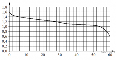 Из графика видно, что за первые 60 часов работы фонарика напряжение упадет на 1 В.