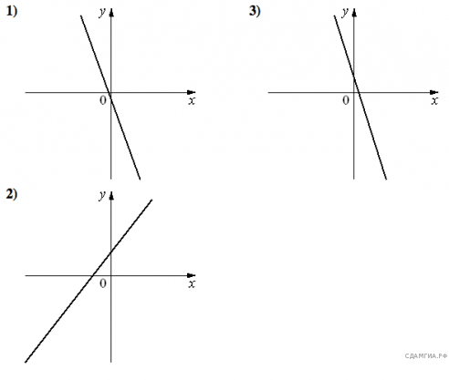 Версия для печати и копирования в MS WordНа рисунках изображены графики функций вида Установите соответствие между знаками коэффициентов k и b и графиками функций.