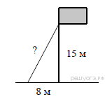 Точка крепления троса, удерживающего флагшток в вертикальном положении, находится на высоте 15 м от земли. Расстояние от основания флагштока до места крепления троса на земле равно 8 м. Найдите длину троса.
