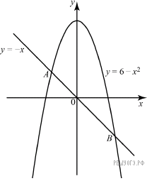 На рисунке изображены графики функций y = 6 − x2 и y = − x. Вычислите абсциссу точки B.
