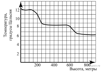 На рисунке изображена зависимость температуры (в градусах Цельсия) от высоты (в метрах) над уровнем моря.