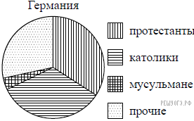 На диаграмме показан религиозный состав населения Австрии. Определите по диаграмме, какая из религиозных групп преобладает.