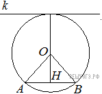 Радиус окружности с центром в точке O равен 65, длина хорды AB равна 50 (см. рис.). Найдите расстояние от хорды AB до параллельной ей касательной k.