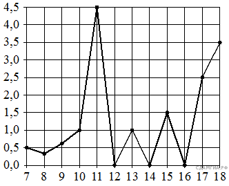 На рисунке жирными точками показано суточное количество осадков, выпадавших в Петрозаводске с 6 по 18 января 2005 года. По горизонтали указываются числа месяца, по вертикали — количество осадков, выпавших в соответствующий день, в миллиметрах. Для наглядности жирные точки на рисунке соединены линией. Определите по рисунку, какое наибольшее суточное количество осадков выпадало в Петрозаводске в данный период. Ответ дайте в миллиметрах.