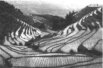 В горных районах, особенно в южных широтах с влажным климатом, земледельцы на склонах гор устраивают террасы. Земледельческие террасы — это горизонтальные площадки, напоминающие ступени. Во время дождя вода стекает с верхних террас вниз по специальным каналам. Поэтому почва на террасах не размывается и урожай не страдает. Медленный сток воды с вершины склона вниз с террасы на террасу позволяет выращивать даже влаголюбивые культуры. В Юго–Восточной Азии террасное земледелие широко применяется для производства риса, а в Средиземноморье — для выращивания винограда и оливковых деревьев. Возделывание культур на террасах повышает урожайность, но требует тяжелого ручного труда.