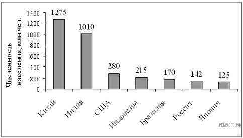 На диаграмме представлены некоторые из крупнейших по численности населения стран мира.